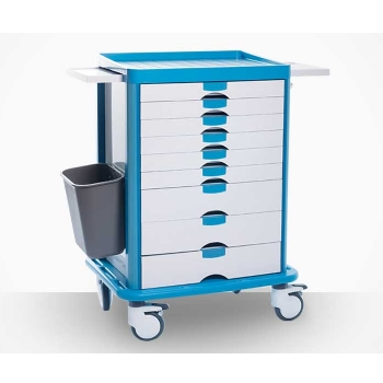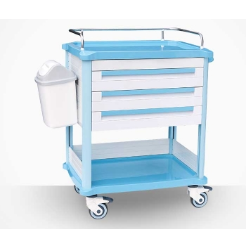 ABS發藥車 FG-B-04產品介紹:尺寸:658*475*1045MM1.包含6個小抽屜和3個大抽屜,多數量的藥盒供不同的儲存需要;2.4個直徑125的腳輪,兩個帶鎖,兩個不帶鎖;3.配有一個垃圾桶...
